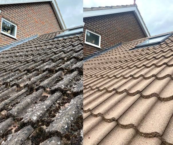 Our professional roof cleaning service safely removes this buildup and helps restore the appearance of your roof.This process leaves your roof looking clean while helping to protect the tiles and extend the life of your roof.